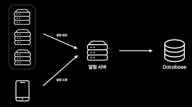 현재 아키텍처는 알림 생성과 조회를 담당하는 알림 서버의 구조입니다.