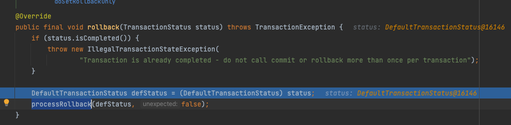 결론적으로는 이번 디버깅을 통해 rollback의 동작과정을 알아보며 runtimeException & Error에만 롤백이 발생하는 이유와 Database 트랜잭션과 관련 없는 로직들이 Rollback 되지 않는 이유에 대해서 이해하였습니다.