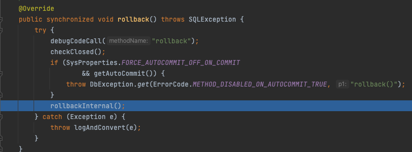 JdbcConnection의 rollbackInternal 메서드