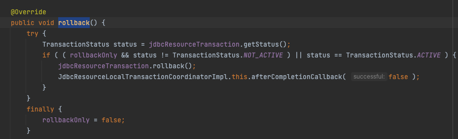 JdbcResourceLocalTransactionCoordinatorImpl rollback 메서드 호출