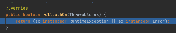 DefaultTransactionAttribute의 rollbackOn메서드