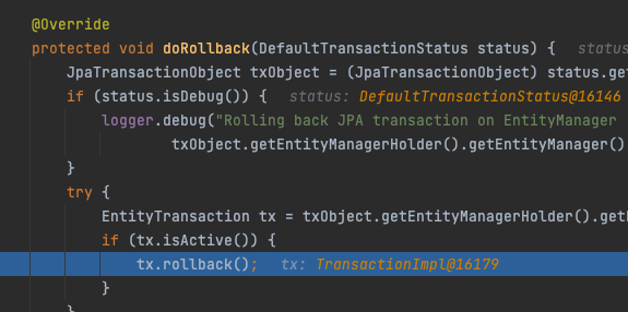 JpaTransactionManager에서 rollback 호출