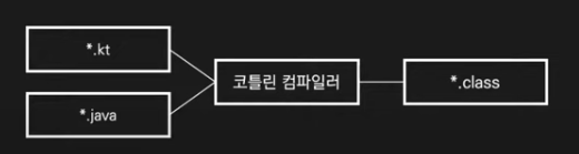 - 코틀린 파일이 코틀린 컴파일러에 의해 .class로 변환된다. (코틀린 코드가 참조하는 Java 코드가 함께 로딩된다)