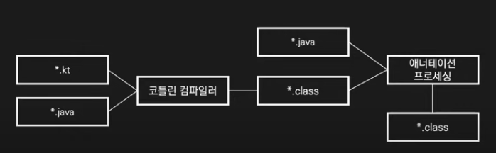 Kotlin이 먼저 컴파일되고 Java가 컴파일되고 애너테이션 프로세싱이 일어나는 과정이 중요하다!