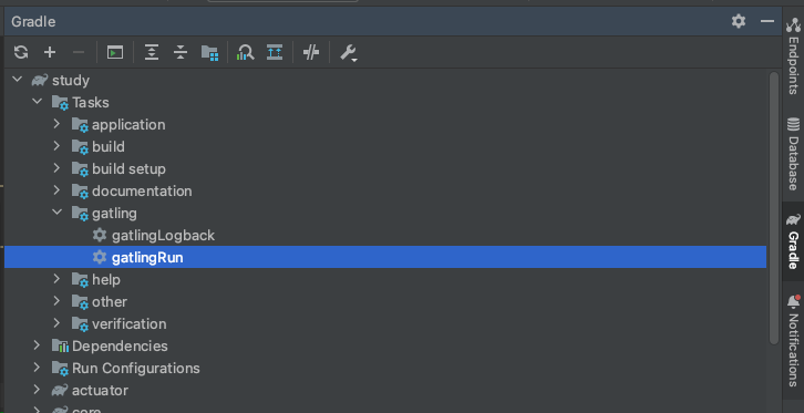 gradle에서 gatlingRun을 수행