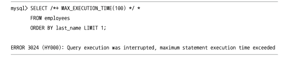 예를 들면 쿼리의 실행 시간을 지정하는 힌트를 주어 지정된 시간이 초과하면 쿼리는 실패하게 됩니다.