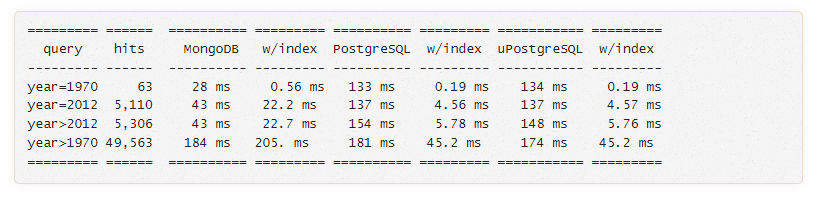 JSON Select Speed Test with MongoDB and PostgreSQL