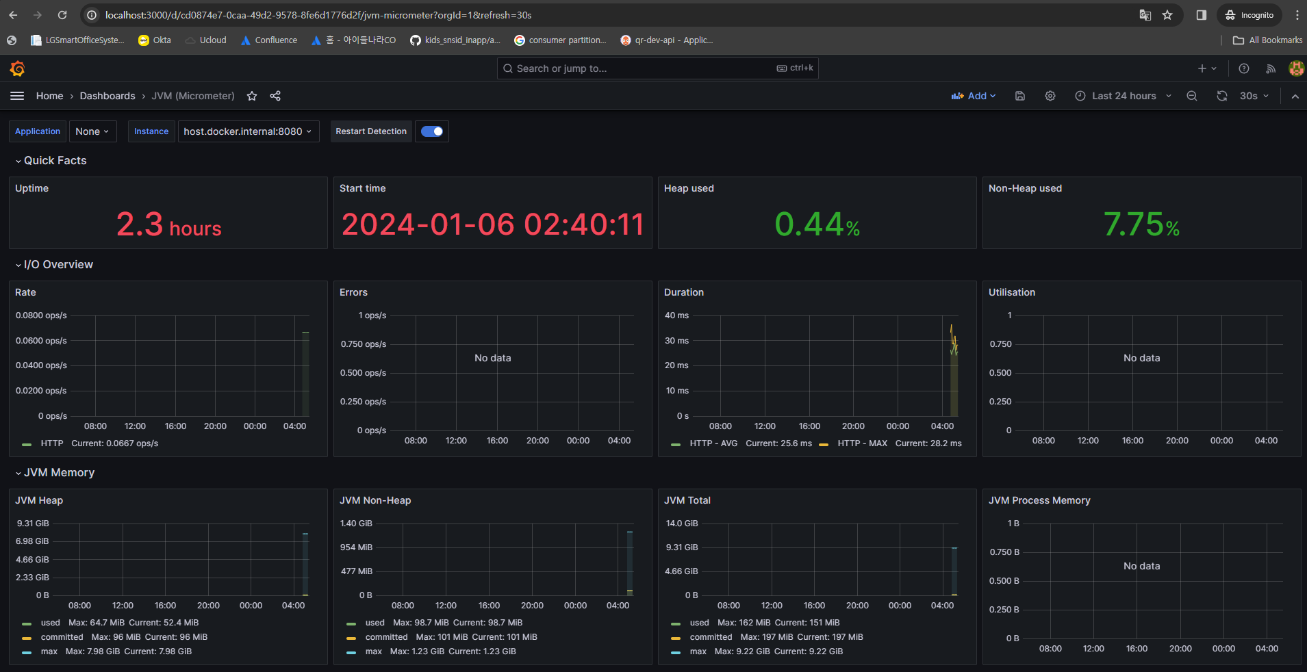 JVM(Micrometer) 대시보드를 활용할 수 있습니다.