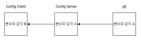 이런 경우에는 기본적으로 Config Server가 제공하는 변수의 값(A)으로 override 되어 Config Client가 실행됩니다.