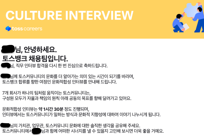 culture interview 문화 면접에 대한 경험이 전혀 없었으며 문화 면접에서 탈락하는 경우도 꽤 많다고 해서 두려움도 많았습니다.